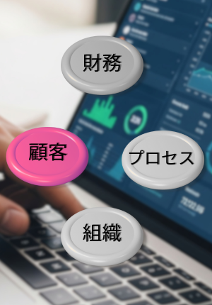 バランスドスコアカードの4つの経営視点のうち、3つの視点にアプローチしていきます。
